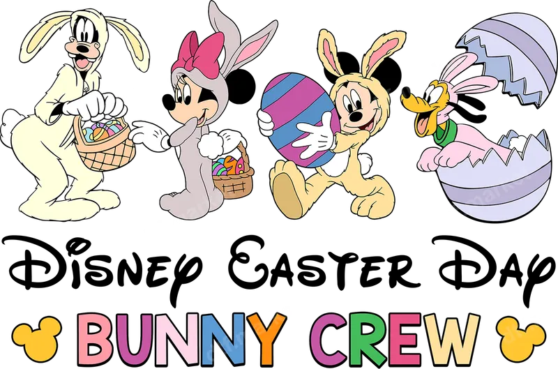 Disney Easter Day Bunny Crew DTF Transfer - Mickey Minnie Goofy Pluto