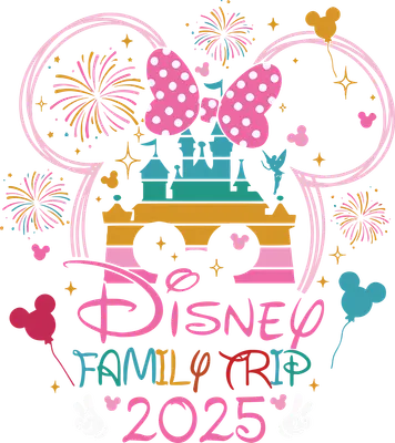 Disney Family Trip 2025 DTF Transfer | Minnie Mouse Castle Fireworks Design