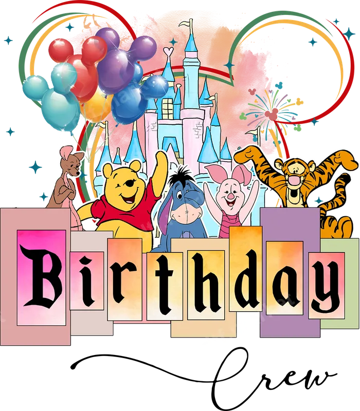 Disney-Inspired Birthday Crew DTF Transfer with Pooh & Friends