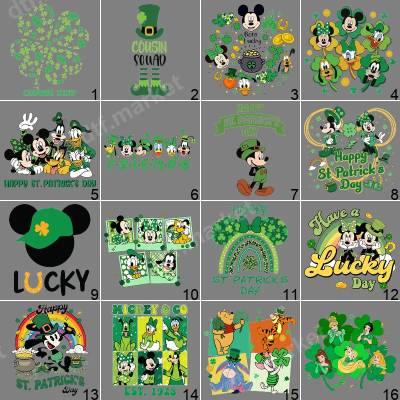 See allCelebrate St. Patrick's Day in whimsical style with this "Born Lucky" Disney DTF transfer. This vibrant design features beloved characters Mickey Mouse, Minnie Mouse, Donald Duck, Goofy, and Pluto, all adorned in festive green leprechaun hats and surrounded by clovers, a shimmering pot of gold, and golden coins. It's a cheerful and charming ready to press transfer that brings the luck of the Irish straight to your wardrobe, capturing the spirit of the holiday with a touch of classic Disney magic. This delightful heat transfer is perfect for Disney fans of all ages looking to add a festive touch to their St. Patrick's Day celebrations. Ideal for family gatherings, school events, parades, or just enjoying the holiday spirit, it makes a fantastic gift for friends, kids, or anyone who loves Mickey and friends. Create custom apparel for the whole family, matching St. Patrick's Day shirts, or unique accessories to spread some joy and luck. Applying this high-quality iron on transfer is incredibly simple. It works seamlessly on a variety of fabrics including cotton, polyester, and their blends, making it versatile for many projects. For best results, use a heat press at 300-325°F for 15 seconds with medium pressure, then peel cold. A household iron can also be used with careful application. Best of all, there's no weeding required, saving you time and effort to create professional-looking garments in minutes. Experience superior print quality with our professional-grade DTF film. This durable t-shirt transfer boasts vivid colors that pop, is crack-resistant, and offers a soft, smooth feel once applied to your garment. The strong adhesive ensures your design stays put through countless washes, providing a long-lasting and impressive finish. Enjoy vibrant, detailed, and professional results with every application, turning ordinary items into extraordinary St. Patrick's Day wear.