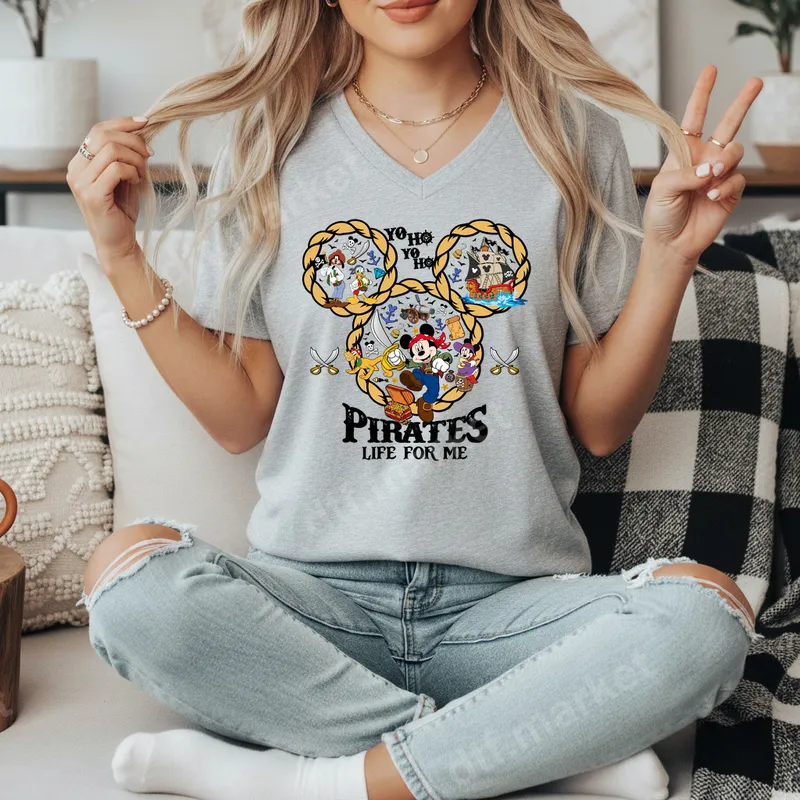 See allEmbrace your inner swashbuckler with this enchanting 'Yo Ho Yo Ho Pirates Life For Me' DTF transfer. This vibrant design features Mickey Mouse leading a crew of beloved Disney characters like Donald, Goofy, and Minnie, all adorned in pirate gear. Framed within a distinctive Mickey head shape crafted from rope and filled with classic pirate elements, this ready to press transfer captures the adventurous spirit of the high seas. It’s a perfect blend of nostalgic charm and pirate excitement for any Disney enthusiast. This unique heat transfer is ideal for Disney park visits, cruise adventures, or themed parties. It makes an incredible gift for Disney lovers, families planning trips to Disneyland or Disney World, or anyone who cherishes the iconic Pirates of the Caribbean ride. Create custom apparel for family reunions or personalize a shirt for a friend; this heat press design brings smiles and magic to any occasion. Applying this direct to film transfer is effortless and requires no weeding. It adheres beautifully to cotton, polyester, and various blends. For best results, use a heat press at 300-325°F for 15 seconds with medium pressure. A household iron can also be used for smaller projects, making it accessible for everyone to create professional-looking items. Simply peel, press, and wear your new t-shirt transfer. Our premium DTF transfers boast exceptional quality, delivering vibrant colors and crisp details. They are designed for durability, offering excellent washability and resistance to cracking or fading, ensuring your iron on looks fantastic for years. The soft-touch finish provides maximum comfort, making your custom garments feel as good as they look. Transform your clothing with a high-quality heat press ready design that truly stands out.