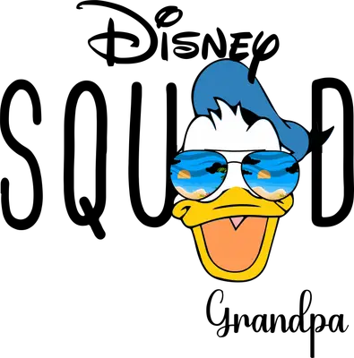 See allDive into family fun with our exclusive Disney Squad Grandpa Donald Duck DTF transfer! This vibrant design features everyone's favorite duck, Donald, sporting cool aviator sunglasses with a serene beach and sunset scene reflected in the lenses. Bold "Disney SQUAD" typography, with "Grandpa" in a charming script below, completes this perfect vacation-ready look. It’s a fantastic ready to press transfer that captures the joy of family trips and the cool vibe of a beloved grandpa. This playful design is perfect for grandpas who are proud members of their Disney Squad, whether for a family cruise, theme park visit, or a summer vacation. It makes an incredible gift for Father's Day, birthdays, or just to celebrate the coolest grandpa around. Small t-shirt businesses and crafters looking to offer unique family vacation apparel will find this a popular heat transfer design. Imagine matching shirts for the whole family, with Grandpa proudly leading the squad! Applying this heat press transfer is a breeze! It adheres beautifully to a wide range of materials, including cotton, polyester, cotton-poly blends, and even nylon. Achieve professional results with a heat press (300-325°F for 15 seconds, medium pressure) or a household iron. Say goodbye to weeding; simply peel and press! Ideal for creating custom t-shirts, hoodies, sweatshirts, tote bags, and even hats. For lasting durability, wash garments inside out and tumble dry on low. Our ready to press transfer boasts exceptional quality, featuring vibrant, full-color printing with crisp details that truly pop. Enjoy a soft, lightweight feel with no heavy vinyl bulk, ensuring maximum comfort and crack-resistant durability. Each direct to film transfer is meticulously printed on premium DTF film with a strong, reliable adhesive backing, guaranteeing professional-grade results that stand the test of time and many washes. Create memorable apparel with confidence!