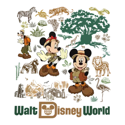 Disney World Animal Kingdom Safari DTF Transfer Mickey Minnie Goofy