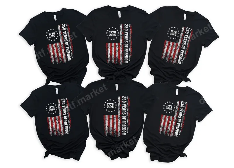 See allThis striking DTF transfer proudly displays a distressed American flag design, commemorating "250 Years of Freedom" from 1776 to 2026. Featuring a bold, vintage-style flag with stars circling the anniversary dates, this ready to press transfer captures a powerful sense of patriotism and historical pride. It's an ideal choice for creating unique apparel that honors the nation's enduring legacy. This unique heat press design is perfect for anyone looking to express their American pride, especially as the nation approaches its 250th anniversary. Ideal for patriots, veterans, military families, and history enthusiasts, it makes a meaningful statement. Use this iron on transfer for crafting special apparel for Fourth of July celebrations, Memorial Day events, Veterans Day tributes, or simply as everyday patriotic wear. It also serves as a thoughtful gift for those who cherish American heritage and freedom. Applying this custom transfer is quick and straightforward. Our high-quality direct to film transfer is compatible with a wide range of materials, including cotton, polyester, and various fabric blends. For best results, use a heat press at 300-325°F for 15 seconds with medium pressure. It can also be applied with a household iron, making it accessible for everyone. Enjoy the convenience of a ready to press transfer with no tedious weeding required, just press and peel! Crafted using professional-grade DTF film, this t-shirt transfer ensures exceptional durability and vivid color reproduction. The design is engineered to be crack-resistant and soft to the touch, providing a comfortable feel on any garment. The strong adhesive guarantees a long-lasting bond, ensuring your personalized shirt design withstands numerous washes while maintaining its vibrant patriotic display.