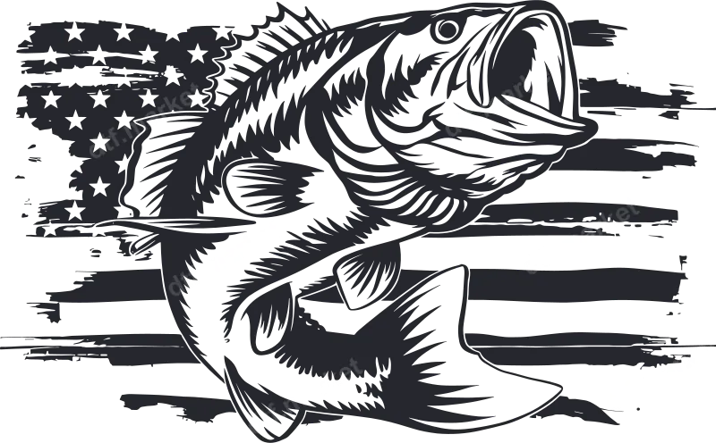 Distressed American Flag Bass DTF Transfer | Ready to Press Fishing Design