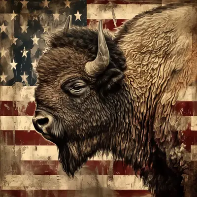 Distressed American Flag Bison DTF Transfer | Rustic Wildlife Design