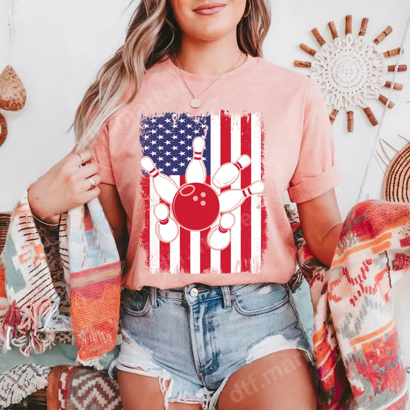 See allCelebrate your passion for bowling and patriotism with this eye-catching DTF transfer. Featuring a bold, distressed American flag background, this design perfectly showcases a central bowling ball surrounded by dynamic bowling pins. It's a vibrant and ready to press heat transfer that combines classic Americana with your favorite sport, making a strong statement wherever you go. This unique design is ideal for bowling enthusiasts, league players, and anyone who loves the thrill of the game while proudly displaying their American pride. It's perfect for casual wear, bowling tournaments, Fourth of July celebrations, Memorial Day, or as a thoughtful gift for a dad, friend, or teammate. Use this versatile iron on transfer to create custom apparel for family outings, team events, or simply to express your unique style. Our high-quality heat press design is incredibly easy to apply to almost any fabric type, including cotton, polyester, and various blends. Achieve professional results using a heat press at 300-325°F for 15 seconds with medium pressure. For those without a professional press, a household iron can also be used with careful application. Forget about tedious weeding; this t-shirt transfer arrives ready to be pressed directly onto your chosen garment. Experience exceptional durability and a soft feel with every print. Our DTF transfers boast vibrant colors that resist cracking and fading, ensuring your custom creation looks fantastic wash after wash. Crafted on professional-grade DTF film with a strong, reliable adhesive, you can trust that your design will adhere beautifully and last for years to come, providing a premium finish to all your apparel projects.