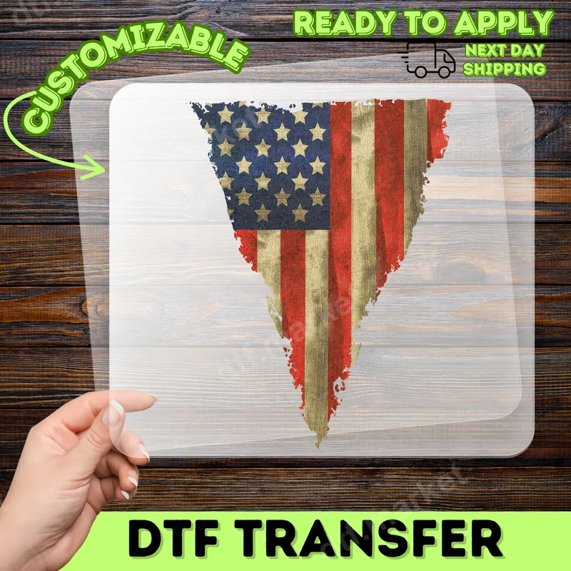 See allThis design features a striking vintage distressed American flag, a perfect DTF transfer for showcasing national pride. Its faded glory and rugged texture give it a timeless, patriotic appeal. This ready to press design is ideal for adding a touch of Americana to any garment or accessory with ease, capturing a classic, worn-in look. Perfect for celebrating patriotic holidays like the 4th of July, Memorial Day, or Veterans Day, this heat press transfer appeals to veterans, active military, history enthusiasts, and anyone proud to display their American spirit. It makes a thoughtful gift for family and friends or a unique addition to your crafting projects for a truly custom touch. Applying this iron on transfer is simple, requiring no weeding or layering. For best results, use a heat press at 300-325°F for 15 seconds with medium pressure. It adheres flawlessly to a wide range of materials, including cotton, polyester, and their blends. A household iron can also be used with firm, even pressure, making it accessible for all skill levels. Our professional-grade DTF transfers deliver exceptional quality, featuring vibrant colors that resist cracking and fading even after many washes. The soft-touch finish ensures comfort on any fabric, providing a durable and flexible design that looks and feels premium. This high-quality apparel transfer is built to last and maintain its stunning appearance.