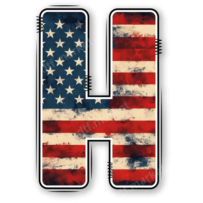 Distressed American Flag Letter H DTF Transfer | Patriotic Initial