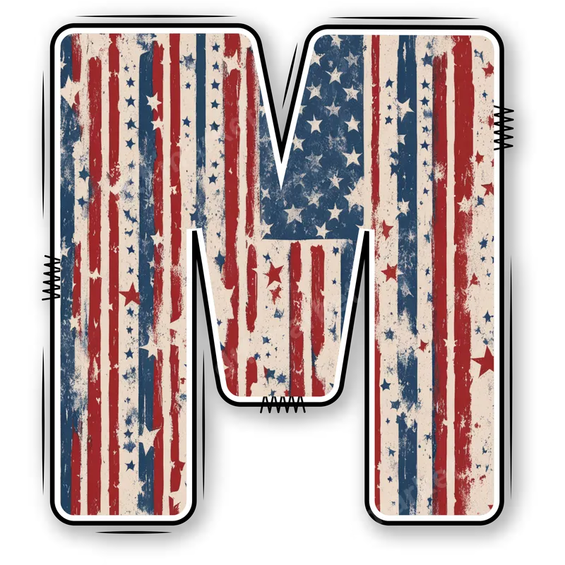 Distressed American Flag Letter M DTF Transfer | Patriotic Initial