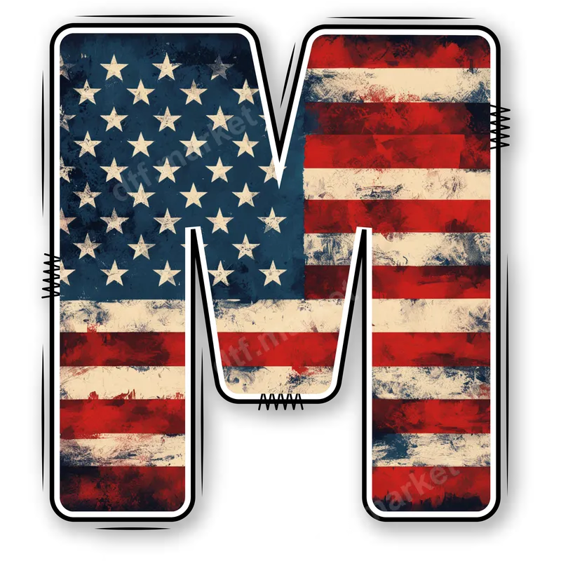 Distressed American Flag Letter M DTF Transfer | Patriotic Initial