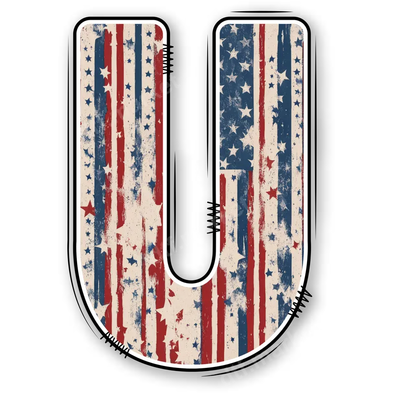 Distressed American Flag Letter U DTF Transfer