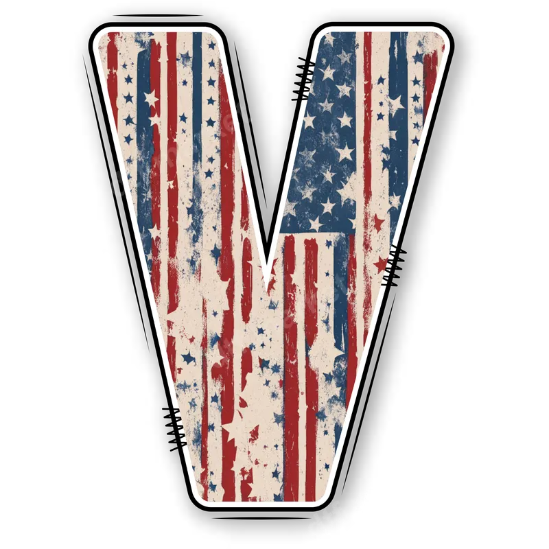 Distressed American Flag Letter V DTF Transfer | Patriotic Initial Heat Press Design