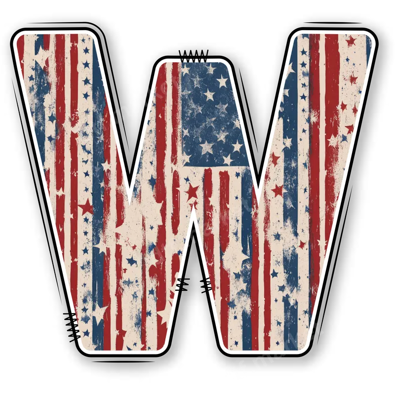 Distressed American Flag 'W' DTF Transfer | Patriotic Initial Letter