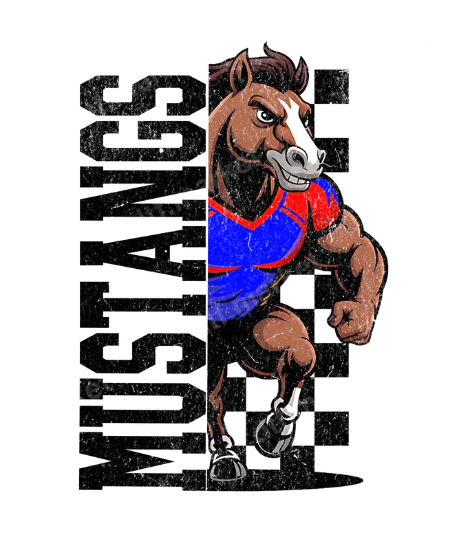 Distressed Mustangs Mascot DTF Transfer for Sports Teams & Fans