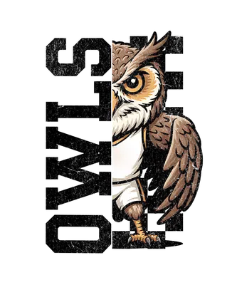 Distressed Owls Mascot DTF Transfer for School Teams & Fan Apparel