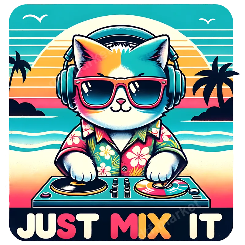 DJ Cat 'Just Mix It' DTF Transfer | Retro Summer Beach Music Design