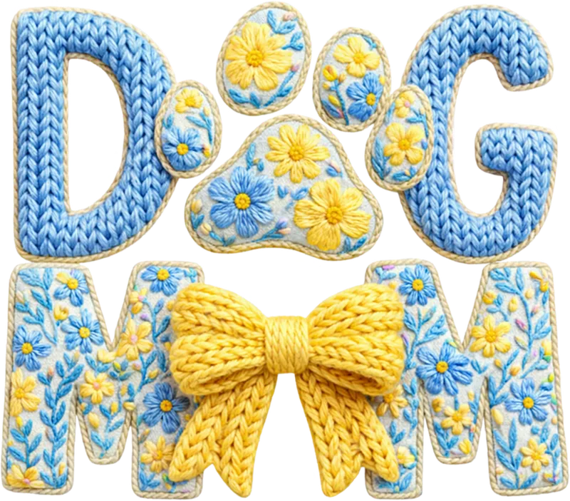 See allCelebrate the special bond with your furry friend with this adorable "Dog Mom" DTF transfer. This unique design features cozy blue knitted texture for the letters 'D' and 'G', while the 'O' is replaced by a charming paw print filled with delicate blue and yellow embroidered flowers. The 'MOM' letters are also beautifully adorned with the same intricate floral embroidery, completed with a lovely yellow knitted bow. This ready to press design brings a sweet, handcrafted aesthetic to any garment. This delightful heat press transfer is perfect for devoted dog moms, pet owners, and animal lovers. It makes an excellent gift for Mother's Day, birthdays, pet adoption celebrations, or simply to express love for your canine companion. Ideal for personalizing your wardrobe or creating thoughtful presents for the dog moms in your life, this apparel transfer is a heartwarming way to showcase your pet passion. Applying this transfer is a breeze, compatible with cotton, polyester, and most fabric blends. For professional results, use a heat press at 300-325°F for 15 seconds with medium pressure, then peel cold. For home crafters, a household iron can also be used following careful instructions. There's no tedious weeding required, making it a quick and easy iron on transfer for all skill levels. Our professional-grade DTF transfers deliver vibrant colors and exceptional durability. The design is crack-resistant, feels soft to the touch, and boasts strong adhesive for long-lasting wear. Enjoy a premium quality t-shirt transfer that stands up to washes while maintaining its charming knitted and floral details, ensuring your 'Dog Mom' pride shines brightly.