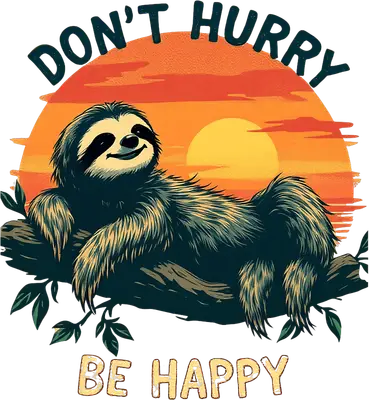 Don't Hurry Be Happy Sloth Sunset DTF Transfer | Chill Vibe Ready to Press