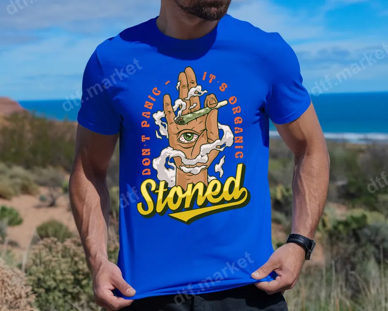 See allThe "Don't Panic It's Organic Stoned" DTF transfer features a unique and eye-catching design perfect for cannabis enthusiasts. This vibrant direct to film transfer showcases a stylized hand holding a lit joint, with smoke artfully curling around the text "Don't Panic It's Organic" and "Stoned" prominently displayed below. It's a bold and humorous statement piece, ready to press onto your chosen garment. This high-quality heat transfer brings a relaxed and fun vibe to any apparel. This funny iron on design is ideal for anyone with a laid-back attitude and a love for cannabis culture. It makes a fantastic gift for friends, family, or yourself for casual outings, festivals, or just lounging at home. Perfect for 4/20 celebrations, birthdays, or as a unique present for stoners, weed lovers, and anyone who appreciates a good chuckle and organic vibes. Applying this ready to press transfer is incredibly simple, making it perfect for both beginners and experienced crafters. It adheres beautifully to a wide range of fabrics including cotton, polyester, and cotton/poly blends. For best results, use a heat press at 300-325°F for 15 seconds with medium pressure, then peel cold. You can even use a household iron for smaller projects. No tedious weeding required, just press and enjoy! Our direct to film transfers are known for their exceptional quality and durability. Expect vivid colors that pop, designs that are crack-resistant, and a soft-to-the-touch finish that feels great on any fabric. Made with professional-grade DTF film and strong adhesive, this apparel transfer ensures your design will withstand countless washes without fading or peeling, giving your custom clothing a long-lasting, professional look.