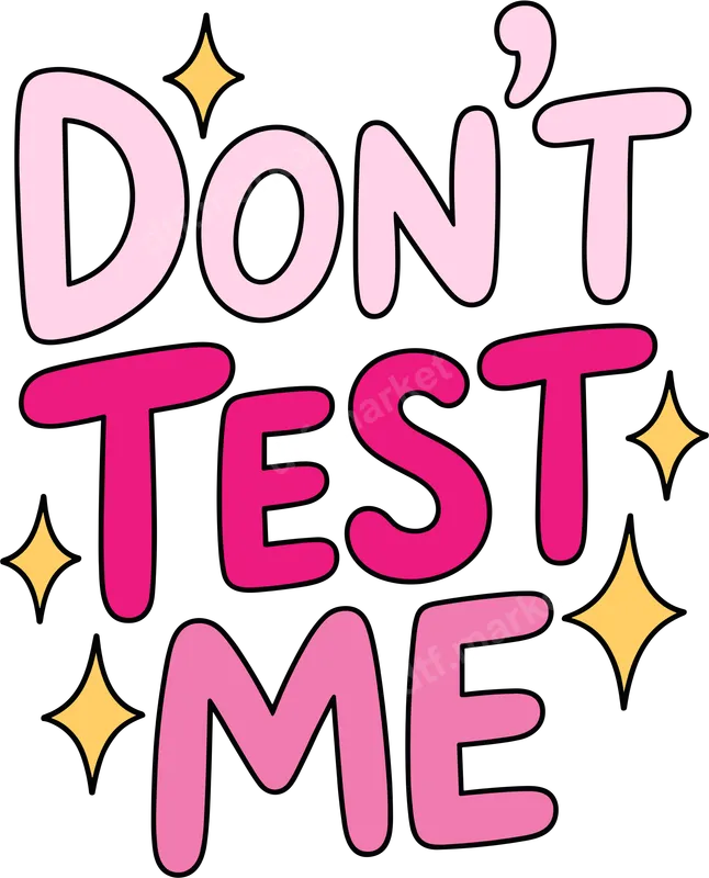 See allThe "Don't Test Me" DTF transfer features a playful yet bold statement in charming two-tone pink bubbly typography, accented with sparkling yellow stars. This eye-catching design expresses a sassy attitude with a touch of fun. It’s a high-quality, ready-to-press heat transfer perfect for personalizing any garment. This design is ideal for individuals who love to express their confident and feisty personality. Perfect for friends, teenagers, or anyone with a sense of humor, it makes a fantastic statement piece for casual wear or custom gifts. Add this apparel transfer to t-shirts, hoodies, or bags for birthdays and fun events. Applying this direct to film transfer is simple on a wide range of fabrics, including cotton, polyester, and blends. For best results, use a heat press at 300-325°F for 15 seconds with medium pressure and a cold peel. A household iron can also be used. No weeding is required, making your customization quick and easy. Experience professional quality with this "Don't Test Me" iron on decal. Our heat press designs deliver vibrant colors, exceptional durability, and resistance to cracking or fading. The print feels soft, integrating seamlessly with fabric. Produced on premium DTF film with strong adhesive, your custom t-shirt transfer will last.