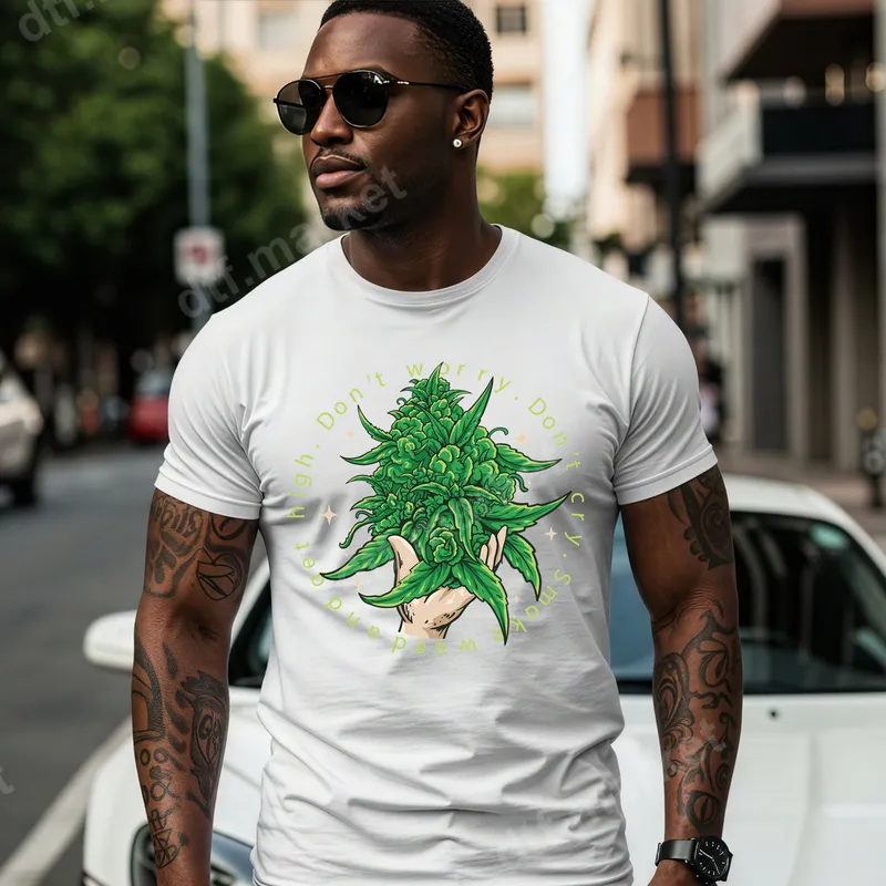 See allThis vibrant DTF transfer features a detailed, lush green cannabis bud held by a hand, surrounded by the lighthearted phrase, "Don't worry. Don't cry. Smoke weed and get high." This ready to press heat transfer captures a relaxed, carefree attitude, perfect for anyone who appreciates a touch of humor and chill vibes. It's a bold and expressive shirt design that will definitely spark conversations and bring a smile. This unique design is ideal for cannabis enthusiasts, 420 celebrations, music festivals, casual gatherings, or as a fun, edgy gift. It appeals to those with a relaxed lifestyle, a sense of humor, and an appreciation for cannabis culture. Perfect for personalizing apparel for friends, family, or yourself, it makes an unforgettable statement for birthdays, holidays, or just because. Applying this apparel transfer is straightforward and hassle-free. Our high-quality DTF transfers are compatible with a wide range of fabrics, including cotton, polyester, and cotton-poly blends. For best results, use a heat press at 300-325°F for 15 seconds with medium pressure, then cold peel. While a heat press is recommended for professional results, this versatile iron on decal can also be applied with a household iron. No weeding, masking, or layering required! Experience superior quality with our direct to film transfers. Each heat press design is crafted using professional-grade DTF film, ensuring vibrant colors, exceptional durability, and a soft, smooth feel on any garment. These transfers are crack-resistant, machine washable, and built to last, providing a high-quality finish that looks and feels premium. Elevate your custom transfer projects with our reliable and easy-to-use transfers.