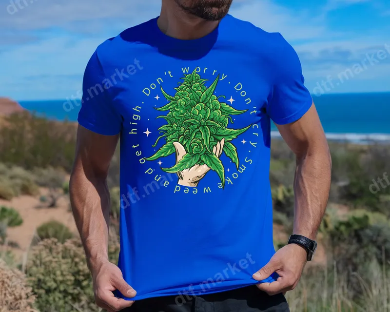 See allEmbrace a laid-back vibe with this 'Don't Worry. Don't Cry. Smoke Weed and Get High' DTF transfer. This vibrant design features a detailed hand gently cradling a lush, green cannabis bud, sparkling with subtle starry accents. It's a perfect expression of chill relaxation, delivering a bold statement with a pop of color. This high-quality DTF transfer is ready to press onto your favorite apparel effortlessly. This fun heat transfer is ideal for cannabis enthusiasts, those who appreciate adult humor, or anyone seeking a unique graphic for casual wear. It makes a fantastic gift for friends on birthdays, 4/20 celebrations, or as a thoughtful present for someone who enjoys a relaxed lifestyle. Perfect for music festivals, parties, or expressing your personality. Applying this eye-catching design is simple and fuss-free. Our ready to press transfer adheres beautifully to cotton, polyester, and various blends. For best results, use a heat press at 300-325°F for 15 seconds with medium pressure. While a heat press is recommended, a household iron can also achieve a great finish. There's absolutely no weeding required, saving you time and effort. Experience superior quality with our premium direct to film transfer. Each heat press design is incredibly vibrant, ensuring colors pop and details remain sharp wash after wash. The transfers are crack-resistant and boast a soft, lightweight feel on the garment, unlike traditional vinyl transfers. We use professional-grade DTF film with strong adhesive, guaranteeing a durable, long-lasting finish.