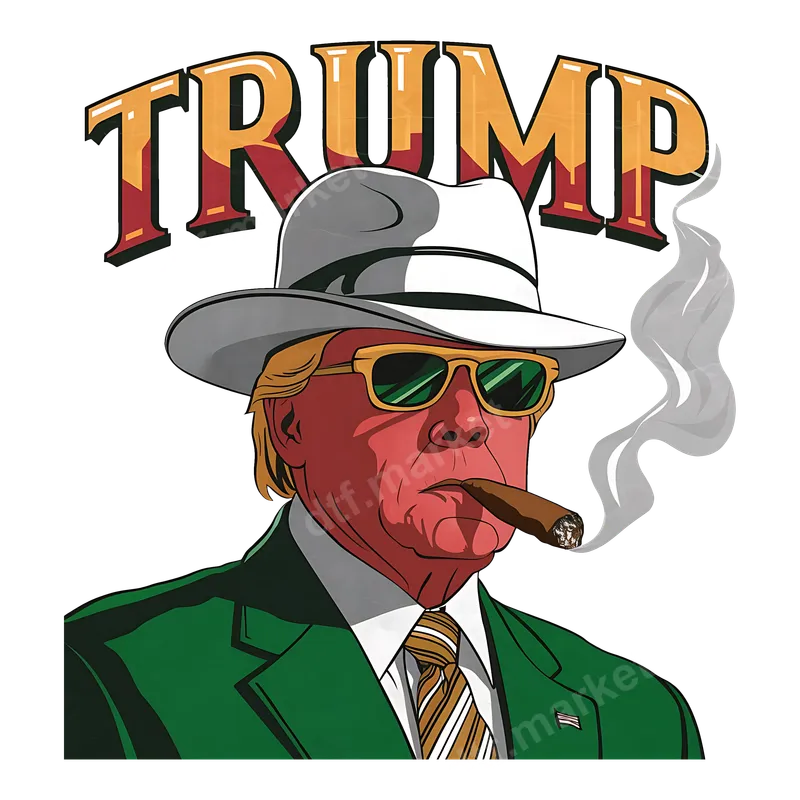 See allMake a bold statement with this vibrant Donald Trump 'Boss' DTF transfer, featuring a stylized caricature of the former president. Depicting Trump in a sleek green suit, cool sunglasses, a classic fedora, and confidently smoking a cigar, this design exudes a distinctive, retro-inspired vibe. The prominent 'TRUMP' lettering above adds to its impactful presence, making it a perfect ready to press graphic for any supporter looking to showcase their allegiance. This unique design is ideal for Trump supporters, political enthusiasts, and conservative voters who appreciate a bold and unconventional representation. Perfect for wearing to political rallies, campaign events, or simply as everyday patriotic apparel, it also makes an excellent gift for fellow supporters during election season or any time of year. Show your support with a transfer that truly stands out. Applying this heat press transfer is straightforward for both professionals and DIY crafters. It adheres perfectly to a wide range of materials, including cotton, polyester, and various blends. For best results, use a heat press at 280-300°F for 6-10 seconds with medium pressure, then instant peel. A household iron can also be used following specific instructions. Enjoy the convenience of an iron on decal that requires no weeding, saving you time and effort. Experience superior quality with this professional-grade apparel transfer. Our DTF film ensures exceptionally vibrant colors that pop, along with excellent crack resistance, ensuring your design looks great wash after wash. The finished transfer is soft to the touch, seamlessly integrating with the fabric for maximum comfort and a durable finish that will last.