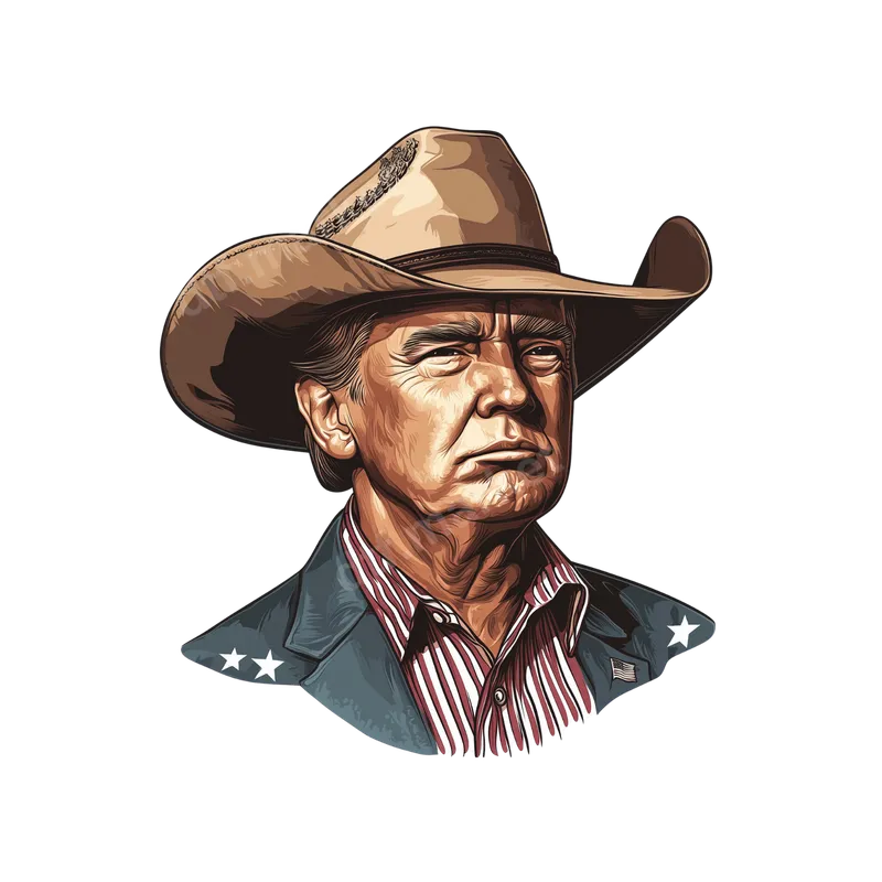 See allMake a bold statement with this distinctive Donald Trump cowboy hat DTF transfer. This vibrant, ready to press design features a recognizable depiction of the former president, Donald Trump, sporting a classic cowboy hat, a striped shirt, and a blazer adorned with patriotic stars and a small American flag detail. The art style is crisp and detailed, offering a unique blend of political iconography with a rugged Western aesthetic, perfect for expressing strong opinions. This versatile heat transfer is ideal for supporters of Donald Trump, enthusiasts of political merchandise, or anyone who appreciates Western-themed designs with a patriotic flair. It's perfect for rallies, political gatherings, Fourth of July celebrations, or everyday wear to express your views. Whether you're customizing apparel for yourself, creating unique gifts for friends and family, or adding inventory for your business, this high-quality shirt design offers an impactful visual for any occasion. Applying this eye-catching iron on transfer is straightforward and efficient on cotton, polyester, and blends. For best results, use a heat press at 280-300°F for 6-10 seconds with medium pressure, then perform an instant hot peel. A household iron can also be used. Unlike traditional vinyl transfer methods, there's no weeding required, saving you time and effort. Just press and go, enjoying a professional-grade finish every time. Crafted using premium DTF film, this direct to film transfer boasts exceptional durability and vibrant, crack-resistant colors that pop. The design maintains an incredibly soft hand feel, making your customized garments comfortable to wear and wash. With strong adhesive properties and professional print quality, this apparel transfer ensures your finished product looks fantastic and lasts, making it a valuable addition to any custom apparel project.