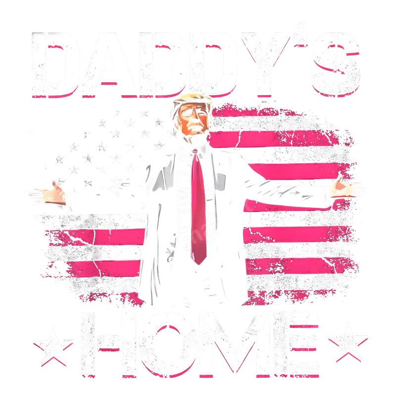 See allThis unique DTF transfer features a striking illustration of Donald Trump with open arms, set against a distressed American flag with unexpected pink stripes. Bold, distressed text above and below proclaims "DADDY'S HOME," creating a powerful and provocative political statement. This ready to press transfer is designed for those who want to express their political views with a memorable and eye-catching graphic. It combines iconic imagery with a distinct color twist, ensuring your apparel stands out. Perfect for political rallies, casual wear, or gifting to fellow supporters, this heat transfer design is ideal for individuals who align with the sentiment. It's an excellent choice for expressing a specific political stance, sparking conversation, or simply showcasing a unique piece of political pop culture art. Whether for a personal statement or a thoughtful gift, this design resonates with a specific audience looking to make their voice heard through their clothing. Applying this heat press transfer is incredibly simple. It adheres flawlessly to a wide range of fabrics, including cotton, polyester, and various blends. For professional results, use a heat press at 280-300°F for 6-10 seconds with medium pressure, followed by an instant cold peel. You can even use a household iron for smaller applications, making it accessible for everyone. Best of all, there's no tedious weeding required, saving you time and effort. This iron on decal transforms your garments in minutes. Crafted using professional-grade direct to film transfer technology, this design boasts vibrant colors that pop and remain brilliant wash after wash. The high-quality film ensures a soft, crack-resistant finish that feels smooth to the touch, unlike traditional vinyl transfer alternatives. Our superior adhesive provides exceptional durability, ensuring your garment design lasts. Experience the premium look and feel of a dtf.market product.