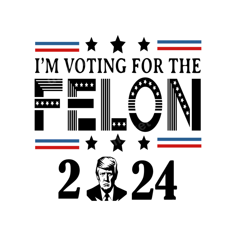 See allThis impactful DTF transfer features the phrase "I'M VOTING FOR THE FELON 2024" prominently, with a detailed silhouette of Donald Trump's head integrated into the numbers. The design incorporates patriotic stars and bold red and blue stripes, creating a strong visual statement for supporters. This high-quality direct to film transfer is ready to press, perfect for expressing your political views and sparking conversation ahead of the upcoming election. Ideal for political rallies, campaign events, or simply everyday wear to showcase your stance. This ready to press design is tailored for dedicated Trump supporters who appreciate a provocative message and want to make their voice heard. It also makes a unique and memorable gift for friends and family deeply engaged in political discourse or those looking for distinctive apparel to wear during election season. Applying this durable heat press transfer is incredibly simple. It adheres seamlessly to a wide range of fabrics, including cotton, polyester, and various blends. For best results, use a heat press at 280-300°F for 6-10 seconds with medium pressure, allowing for an instant peel. While a heat press is recommended, a household iron can also be used with firm, even pressure. Enjoy the convenience of no tedious weeding or layering, making this iron on transfer a quick and easy customization solution. Crafted with professional-grade DTF film, this heat press design ensures exceptionally vibrant colors and crisp details that endure. The print is crack-resistant, highly durable, and features a soft, flexible feel that seamlessly integrates with your garment. Expect long-lasting wear with strong adhesive, providing a professional finish on any apparel transfer project you undertake.