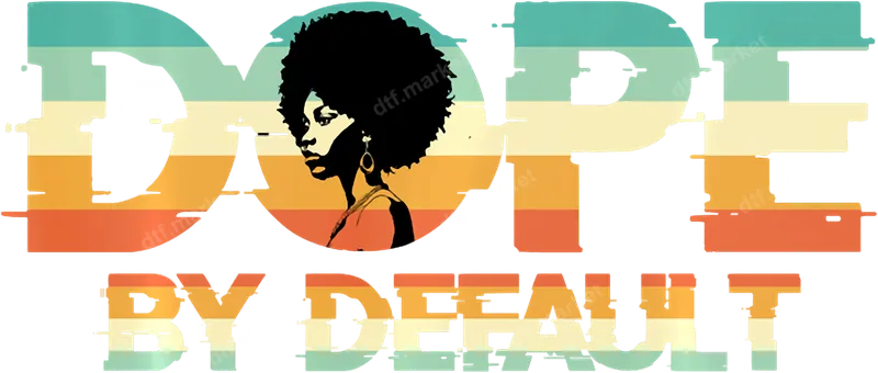 See allThe "Dope By Default" design is a vibrant and empowering DTF transfer featuring a stylish retro aesthetic. It showcases the phrase "DOPE BY DEFAULT" with the 'O' cleverly replaced by a striking silhouette of a confident woman with a magnificent afro and hoop earrings. The text itself boasts a distressed, striped pattern in cool teal, warm cream, sunset orange, and rich peach tones, giving it a nostalgic and powerful vibe. This ready to press design is perfect for adding an instant boost of style and self-assurance to any garment. This eye-catching heat transfer is ideal for anyone who wants to express confidence, celebrate Black culture, or simply embrace a cool retro look. It's perfect for personalizing apparel for everyday wear, music festivals, cultural events, or as a thoughtful gift for friends and family who appreciate unique, empowering fashion. Whether you're making a statement or gifting a piece of wearable art, this design resonates with those who are effortlessly "dope." Applying this versatile DTF transfer is straightforward. It adheres beautifully to a wide range of fabric types, including cotton, polyester, and various blends, making it suitable for almost any project. For best results, use a heat press at 300-325°F for 15 seconds with medium pressure, then cold peel. For smaller projects or home crafters, a household iron can also be used with careful application. Forget about time-consuming weeding; this ready-to-press transfer is designed for quick and easy application. Our direct to film transfers are crafted using professional-grade DTF film and inks, ensuring exceptional quality. You'll love the vibrant colors, sharp details, and crack-resistant finish that stands up to repeated washes. The transfers boast a soft, flexible feel on the fabric, integrating seamlessly without a heavy vinyl transfer feel. With its strong adhesive and durable print, this apparel transfer promises a long-lasting, professional look on all your customized items.