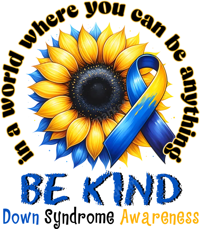 Down Syndrome Awareness Sunflower DTF Transfer | Be Kind Quote
