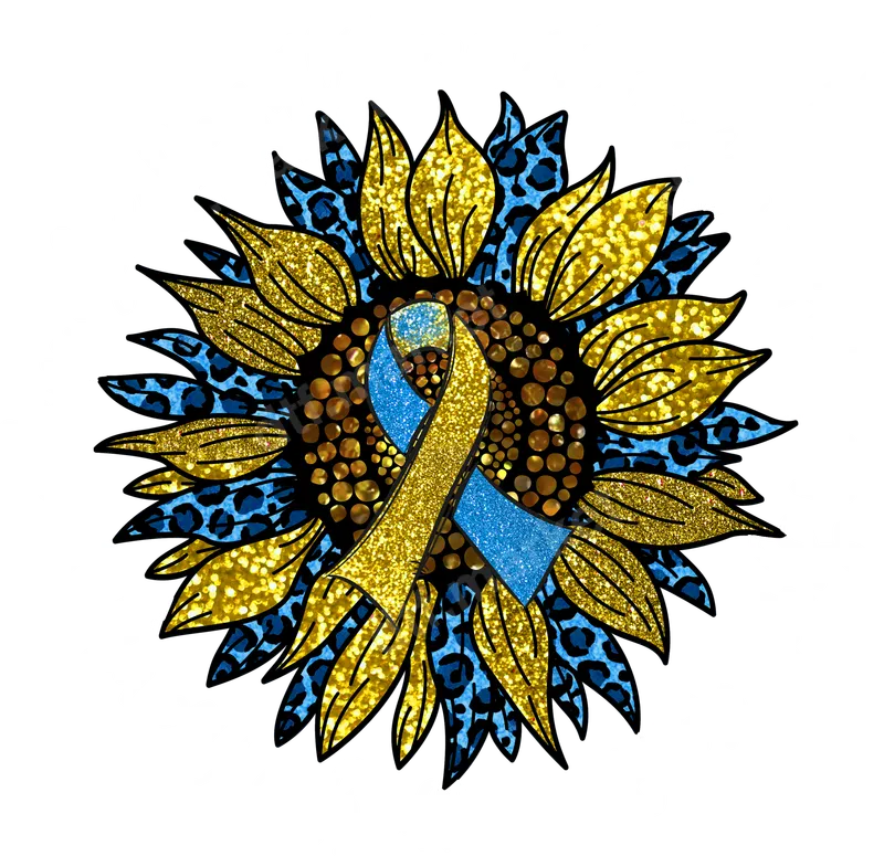 See allThis captivating DTF transfer features a radiant sunflower, beautifully detailed with shimmering glitter and stylish blue leopard print petals, all centered around a prominent blue and yellow awareness ribbon. The design radiates warmth, hope, and unwavering support for Down Syndrome awareness. It's a truly vibrant and meaningful graphic, perfect for expressing solidarity and love, and comes as a high-quality, ready to press design. This special design is perfect for parents, family members, friends, and advocates of individuals with Down Syndrome. It’s an ideal way to celebrate World Down Syndrome Day (March 21st), participate in awareness events, or simply show your love every day. As a thoughtful gift, this iron on transfer allows recipients to personalize apparel and accessories, spreading an important message with pride and joy. Applying this beautiful heat press transfer is incredibly simple. Designed for ease, it requires no weeding or complex steps – just press and peel! For best results, apply with a heat press at 300-325°F for 15 seconds. This versatile design adheres perfectly to a wide range of fabrics, including cotton, polyester, and poly/cotton blends. Customize your favorite t-shirts, hoodies, sweatshirts, tote bags, onesies, or even hats with this inspiring image. Experience superior quality with our premium DTF film. Each transfer boasts exceptionally vibrant colors that truly pop, along with excellent durability, making it crack-resistant and long-lasting. The finished design has a soft touch feel, seamlessly integrating with your garment for a professional look. With its strong adhesive and high-definition printing, this apparel transfer is far more versatile and resilient than a traditional vinyl transfer, ensuring your message endures.