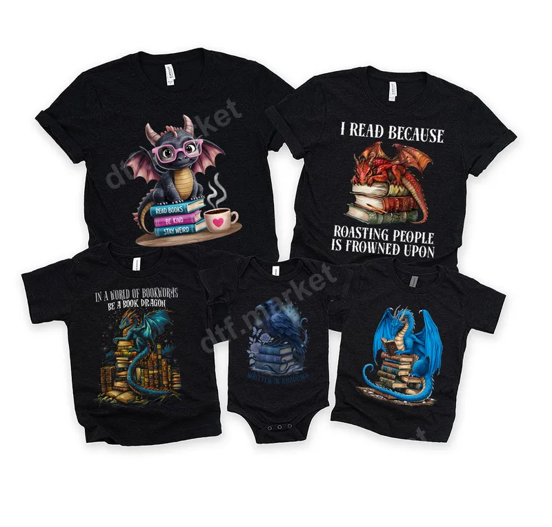 Dragon Book Lover DTF Transfer Collection - Ready to Press Reading Designs