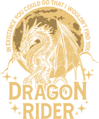 See allThis captivating DTF transfer features a majestic dragon with intricate scales and powerful wings, silhouetted against a full moon. The bold text "DRAGON RIDER" is accompanied by the evocative phrase "IN EXISTENCE YOU COULD GO THAT I WOULDN'T FIND YOU" arching above. This detailed design exudes a powerful fantasy vibe, perfect for anyone who embodies loyalty, adventure, and an unbreakable bond, making it a truly unique ready to press apparel statement. This striking design is perfect for fantasy enthusiasts, role-playing gamers, and anyone who appreciates mythical creatures. It makes an excellent gift for a partner, best friend, or family member, celebrating an unyielding connection. Crafters and small businesses will find this iron on transfer ideal for creating unique merchandise, fan apparel, or personalized gifts that stand out with a blend of loyalty and mystique. This heat press transfer works seamlessly on a wide range of fabrics, including cotton, polyester, cotton-poly blends, and even nylon. Achieve professional results with a heat press (300-325°F for 15 seconds, medium pressure) or a household iron. Forget weeding; simply peel and press! It's perfect for crafting custom t-shirts, hoodies, sweatshirts, tote bags, pillow covers, baby onesies, aprons, and denim jackets. For lasting durability, wash garments inside out and tumble dry low. Experience vibrant, full-color printing and fine detail with this premium direct to film transfer. Crack-resistant and incredibly soft to the touch, it provides a superior feel compared to heavy vinyl. Each ready to press transfer is meticulously printed on high-quality DTF film with a strong adhesive backing, ensuring professional-grade results that elevate any garment or accessory.