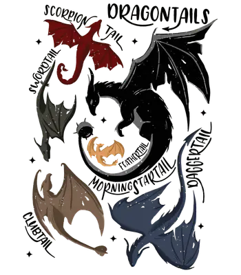 Dragon Tails Types DTF Transfer Fantasy Creature Design