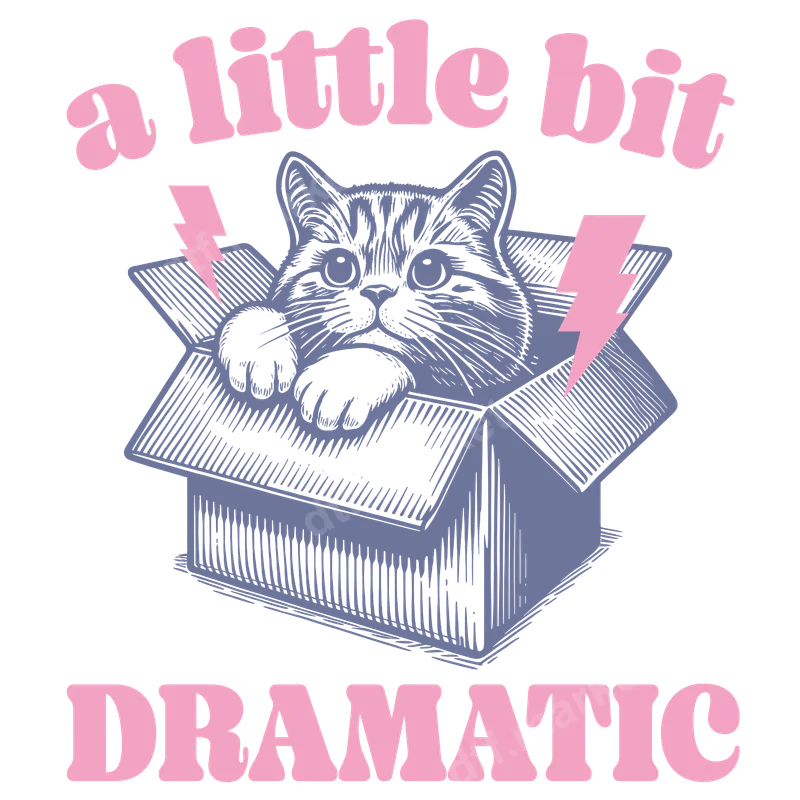 See allEmbrace your inner drama queen with our 'A Little Bit Dramatic' DTF transfer! This charming design features an expressive, slightly grumpy cat peeking out of a cardboard box, flanked by two playful pink lightning bolts. The bold pink text perfectly captures the sassy nature of beloved pets. This high-quality DTF transfer is an instant favorite for anyone who understands pet theatrics and comes ready to press for easy customization. This unique ready to press design is ideal for cat lovers, pet parents, and anyone with a sarcastic sense of humor. It makes a fantastic gift for birthdays, Mother's Day, or just because you appreciate a good laugh. Perfect for personalizing apparel for casual outings or expressing your personality. Whether you're a cat mom or buying for a friend who loves funny animals, this heat transfer is sure to be a conversation starter. Our premium DTF transfers adhere beautifully to 100% cotton, polyester, and blends. For best results, use a heat press at 300-325°F for 15 seconds with medium pressure, then cold peel. A household iron can also be used. Enjoy a durable, crack-resistant design without the hassle of weeding, unlike traditional vinyl transfer options. This makes creating custom apparel simple and efficient. Experience vibrant colors and crisp details with every application. Our direct to film transfers boast exceptional durability, resisting cracking and fading wash after wash. The finished design feels soft to the touch, seamlessly integrating with your garment. Crafted using professional-grade DTF film and strong adhesive, these apparel transfers ensure a long-lasting, professional finish that stands out. Transform your wardrobe with this fun and stylish design!