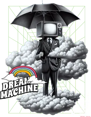 Dream Machine TV Head Man DTF Transfer | Surreal Cloud Umbrella Art