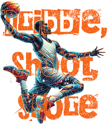 The image showcases an intensely dynamic basketball player in mid-air, dribbling the ball with the text "Dribble, Shoot, Score" boldly overlayed in a distressed orange font. The player himself is rendered with striking, almost biomechanical detail in vibrant blues, reds, and oranges, giving him a powerful, athletic, and slightly futuristic look. This energetic DTF transfer captures the essence of the game, making it a perfect ready to press design for anyone passionate about basketball. This inspiring design is perfect for basketball players, coaches, dedicated fans, and sports enthusiasts of all ages. It makes an excellent gift for end-of-season banquets, team events, or just celebrating a love for the game. Small t-shirt businesses, Etsy sellers, and crafters looking for unique iron on transfers to create custom sports apparel will find this design incredibly appealing. Imagine it on team jerseys, fan gear, or motivational shirts for training. Applying this high-quality heat press transfer is quick and easy. It works flawlessly on a wide range of materials, including cotton, polyester, cotton-poly blends, and even nylon, providing versatility for your projects. Simply use a heat press (recommended at 300-325°F for 15 seconds with medium pressure) or a household iron. No weeding or intricate layering is required – just peel and press! It's ideal for custom t-shirts, hoodies, sweatshirts, gym bags, tote bags, and even hats, transforming everyday items into personalized statements. For best results and lasting durability, wash garments inside out and tumble dry low. Each ready to press transfer ensures vibrant, full-color printing with exceptional detail, bringing the energetic design to life. The transfers are crack-resistant and boast a soft-hand feel, avoiding the heavy, stiff texture often associated with vinyl. Printed on premium DTF film with a robust adhesive backing, every direct to film transfer is engineered for professional, long-lasting results that will stand up to wear and washing, making your creations truly shine.