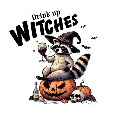 Drink Up Witches Raccoon DTF Transfer | Funny Halloween Heat Press Design