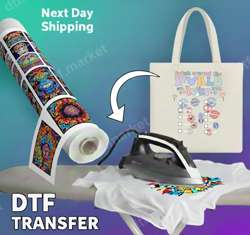 See allEmbark on a magical journey with our 'Drinks Around The World Est. 1982 Tour' DTF transfer. This vibrant, ready-to-press design features playful pastel lettering, iconic Mickey ears subtly integrated into 'WORLD,' and a fun checklist of international passport stamps like Mexico, Germany, UK, and Japan. It perfectly captures the spirit of a famous theme park tradition, making it an ideal choice for any fan looking to celebrate their global sipping adventure. This high-quality direct-to-film transfer arrives pre-printed and ready for immediate application. This unique heat transfer is perfect for Disney enthusiasts, Epcot adventurers, and anyone planning a fun-filled group trip or bachelorette party to the parks. It’s an excellent choice for family vacations, anniversary celebrations, or as a thoughtful gift for friends who love to 'drink around the world.' Imagine matching custom t-shirts for your whole crew, or a personalized tote bag to carry your essentials while exploring the World Showcase. Applying this ready-to-press transfer is straightforward, whether you use a professional heat press or a household iron. For best results with a heat press, apply at 300-325°F for 15 seconds with medium pressure. This versatile heat press design works beautifully on a wide range of materials, including cotton, polyester, and their blends. Forget about the hassle of weeding vinyl transfers; our DTF transfers are designed for quick and easy application, saving you time and effort. Our DTF transfers are crafted for exceptional durability and visual appeal. You'll enjoy incredibly vibrant colors that pop, ensuring your custom apparel stands out. The prints are crack-resistant and offer a soft, smooth feel, unlike rigid traditional vinyl. Made with professional-grade DTF film and strong adhesive, these apparel transfers are built to last through countless adventures and washes, maintaining their pristine look and feel.