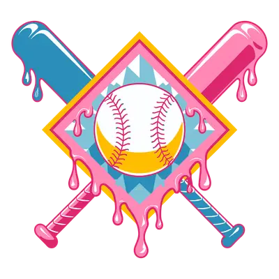 Dripping Baseball Bats & Ball DTF Transfer | Pink & Blue Slime Sports Design