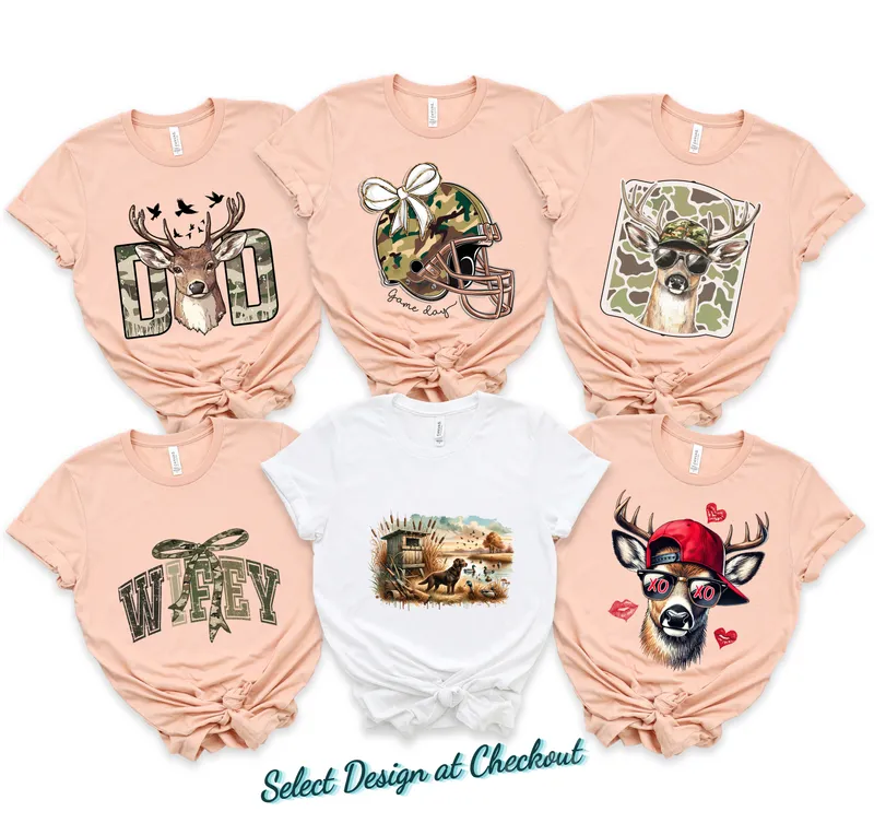See allExplore our diverse collection of outdoor and hunting-themed DTF transfers, perfect for personalizing apparel and accessories. This selection features a classic duck hunting scene with a dog and ducks by a blind, alongside various deer designs including a rugged "DAD" deer with camo lettering, a stylish "WIFEY" with a camo bow, and a cool deer sporting sunglasses or a backward hat. We also offer a "Game Day" camo football helmet design. Each ready to press transfer offers vibrant colors and intricate details to truly stand out. These versatile designs are ideal for hunters, fishing enthusiasts, and anyone who embraces the outdoor lifestyle. Surprise the dad, grandpa, or uncle in your life with a unique heat press transfer for Father's Day, or create custom gear for hunting season, football game days, and family outings. They also make fantastic birthday gifts for friends and family who love wildlife, camo, and sports. Applying these premium iron on transfers is incredibly simple, whether you're using a professional heat press or a household iron. Our transfers adhere perfectly to a wide range of materials, including cotton, polyester, and various fabric blends. For best results, use a heat press at 300-325°F for 15 seconds with medium pressure. The beauty of DTF is that there's absolutely no weeding required, saving you time and effort. Experience the superior quality of our apparel transfers. Crafted with professional DTF film, these designs boast exceptional vibrancy, crack-resistance, and a soft, smooth feel once applied. The strong adhesive ensures your design stays put and looks fantastic wash after wash, providing a durable and professional finish for all your custom creations.