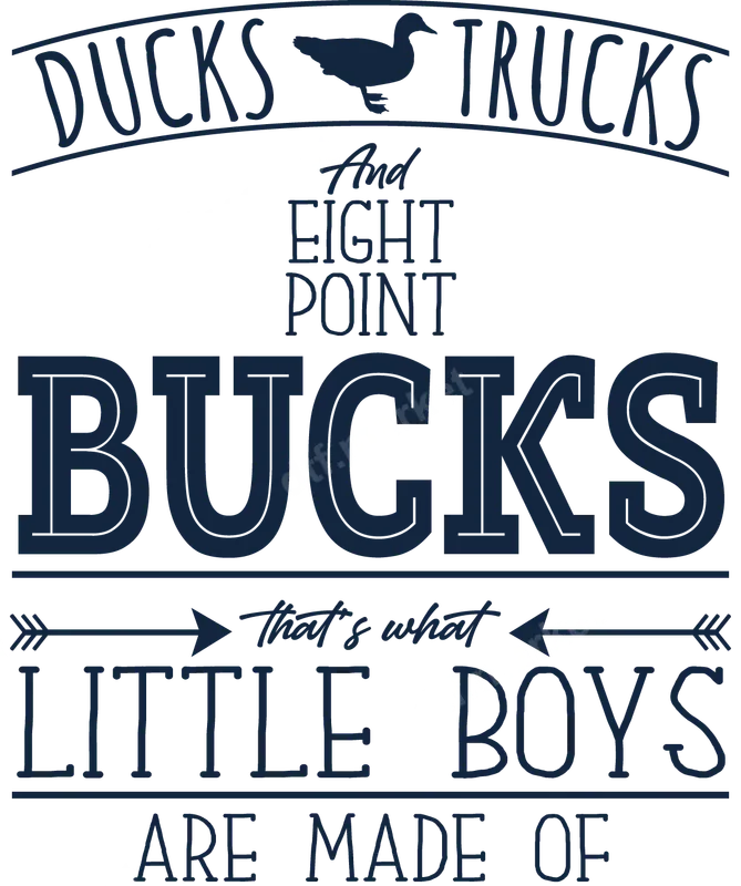 See allThis charming DTF transfer features a playful design for the little outdoorsman, declaring "DUCKS, TRUCKS And EIGHT POINT BUCKS That's what LITTLE BOYS ARE MADE OF." With a classic duck silhouette and a rustic font, this design captures the adventurous spirit of youth and the call of the wild. It’s a perfect ready to press graphic for creating unique apparel that celebrates a love for hunting and country life, ideal for your own little boy or as a thoughtful gift. This design is ideal for parents, grandparents, or anyone with a young boy who loves hunting, wildlife, or the great outdoors. It's excellent for birthday presents, baby shower gifts, or just to create a fun, personalized shirt for everyday wear. Whether he's heading to the duck blind with dad, cruising dirt roads, or dreaming of his first big buck, this iron on transfer celebrates his passions. Applying this vibrant heat transfer is incredibly simple. It adheres beautifully to a wide range of fabrics, including cotton, polyester, and various blends. For best results, use a heat press at 300-325°F for 15 seconds with medium pressure. A standard household iron can also be used, making it accessible for everyone. Best of all, there's no tedious weeding required, so you can achieve professional results quickly and easily. Expect exceptional quality with this professional-grade direct to film transfer. Our transfers boast vibrant, true-to-life colors that resist cracking and peeling, even after multiple washes. The soft-touch feel ensures maximum comfort on any garment, while the strong adhesive guarantees a long-lasting bond. Create durable, high-quality t-shirt transfers that look amazing for years to come.