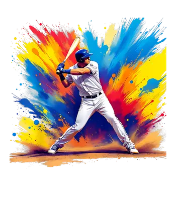 Dynamic Baseball Batter DTF Transfer - Colorful Paint Splatter Design