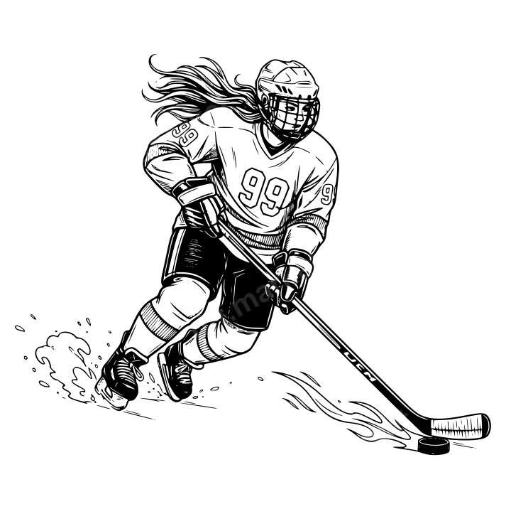 Dynamic Female Hockey Player DTF Transfer - Action Ice Hockey 99 Design