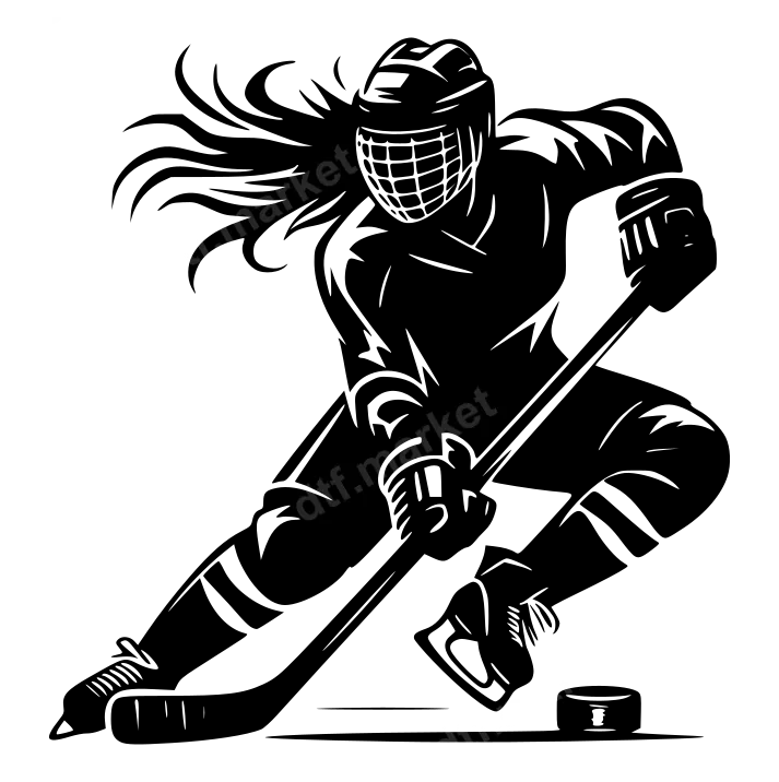 Dynamic Female Hockey Player DTF Transfer | Ready to Press Design