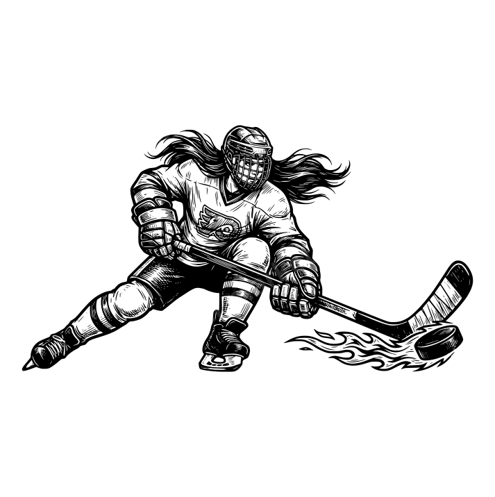 Dynamic Female Hockey Player Flaming Puck DTF Transfer