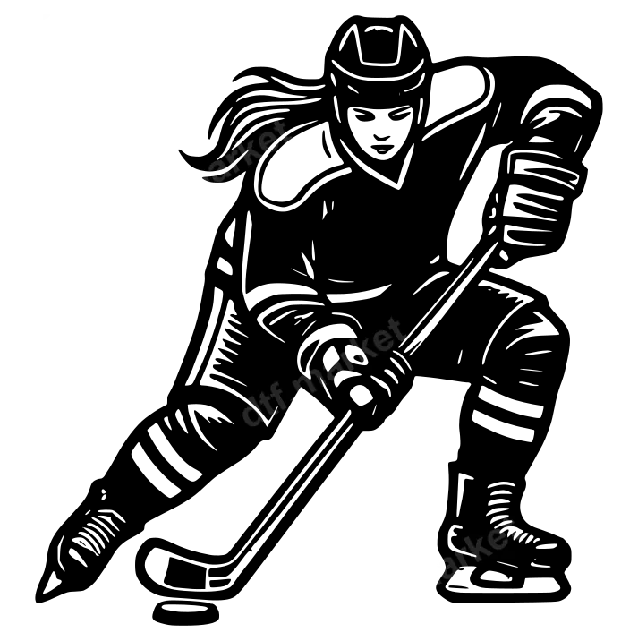 Dynamic Female Ice Hockey Player DTF Transfer | Ready to Press